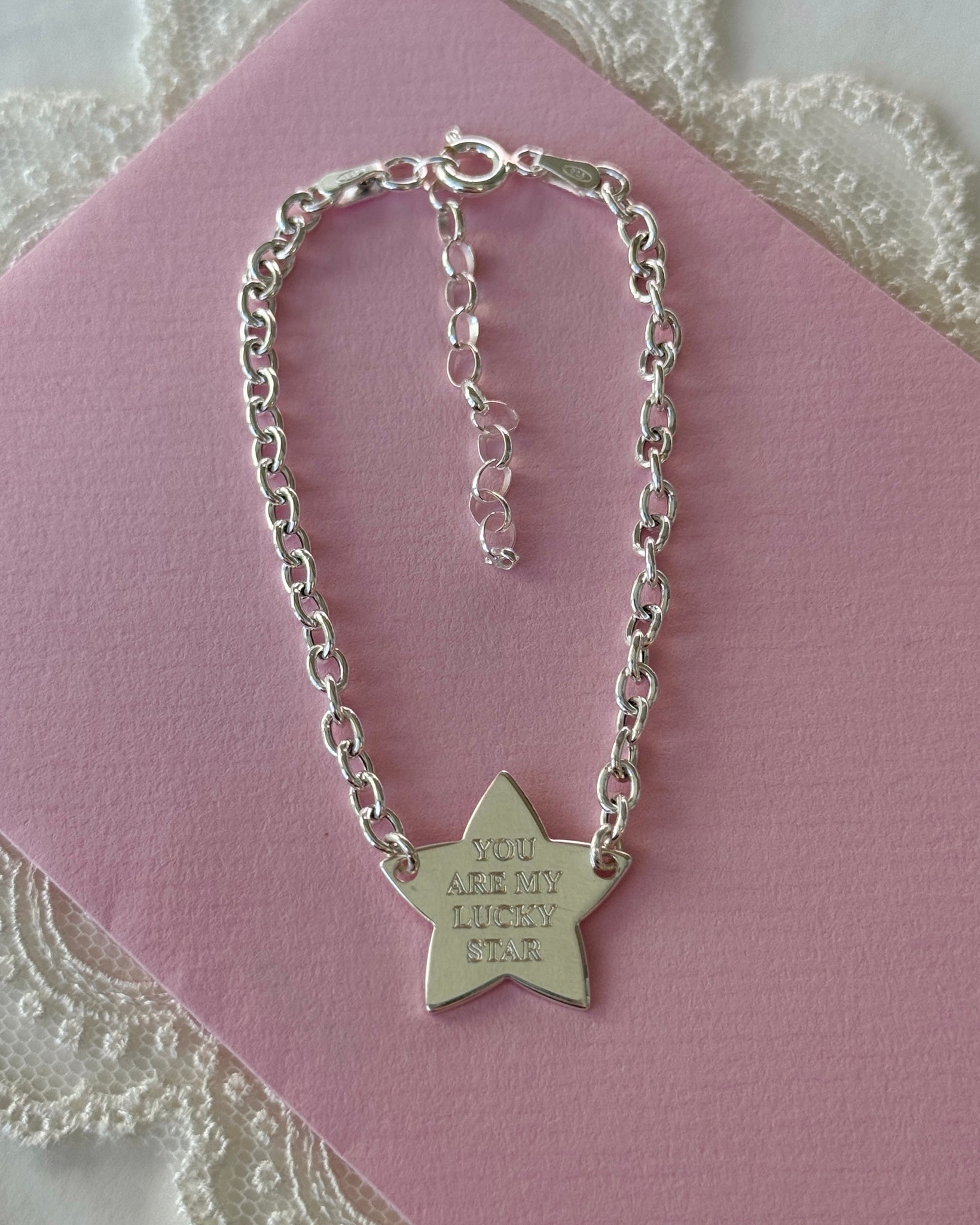 This delicate bracelet features an engraved star charm, symbolizing guidance, love, and good fortune. Perfect to gift to your own lucky star or to wear as a personal lucky amulet. Thoughtfully designed and locally engraved in Spain, it’s crafted from high-quality 925 sterling silver.