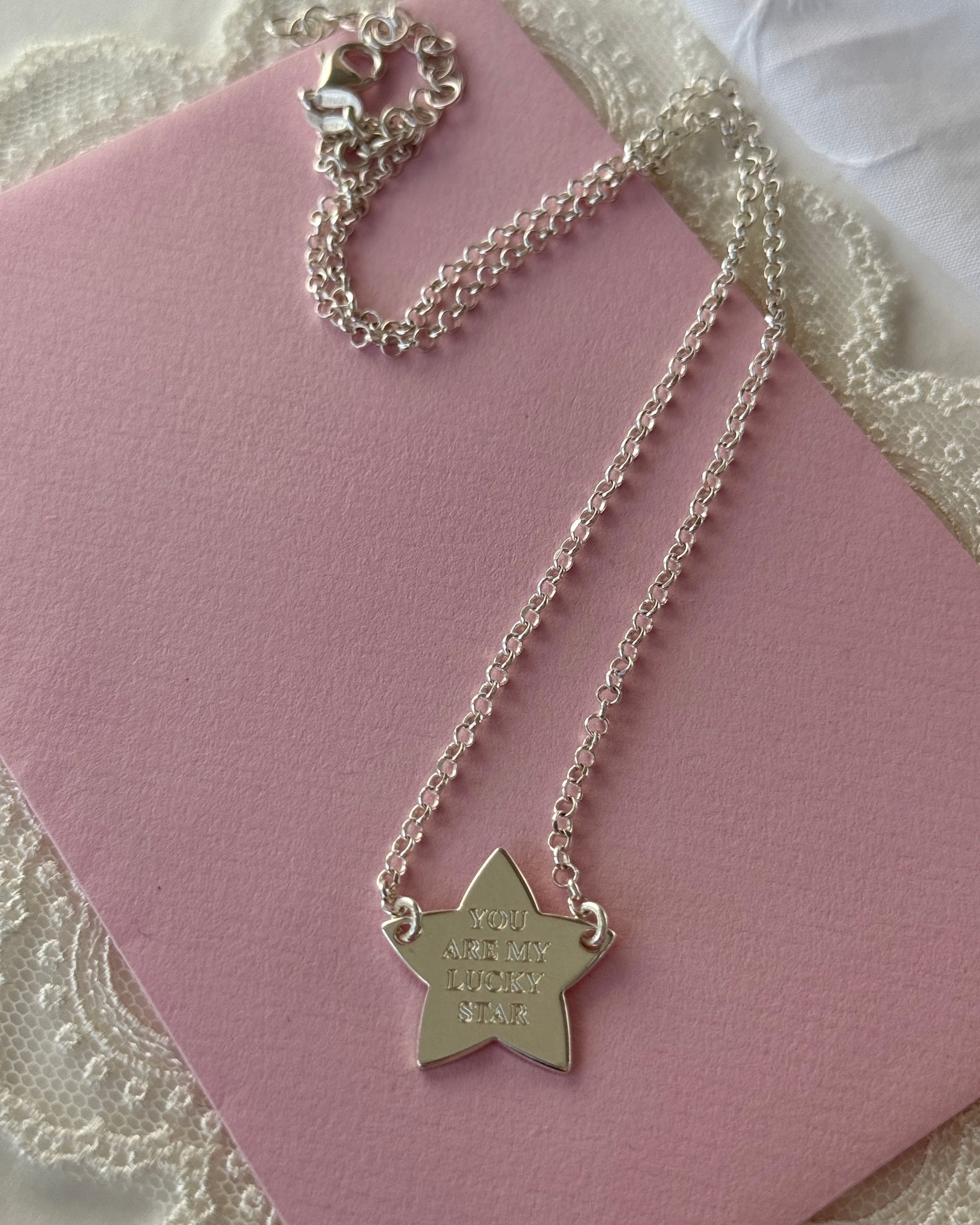 This delicate necklace features an engraved star charm, symbolizing guidance, love, and good fortune. Perfect to gift to your own lucky star or to wear as a personal lucky amulet. Thoughtfully designed and locally engraved in Spain, it’s crafted from high-quality 925 sterling silver.